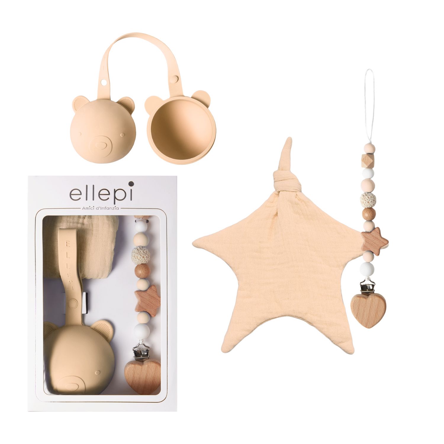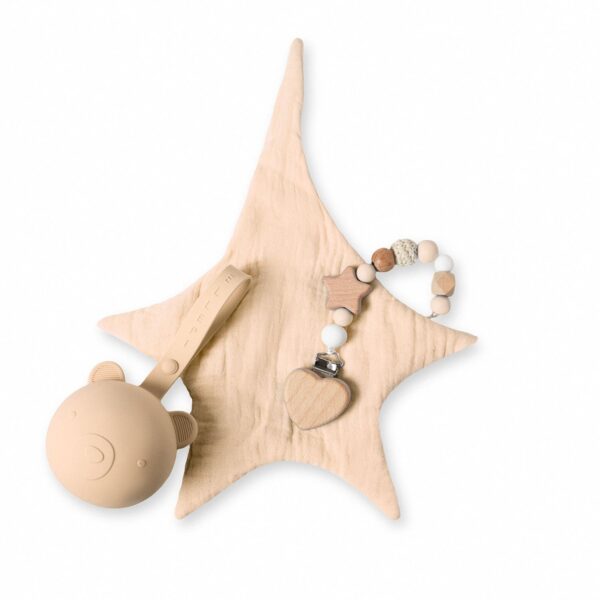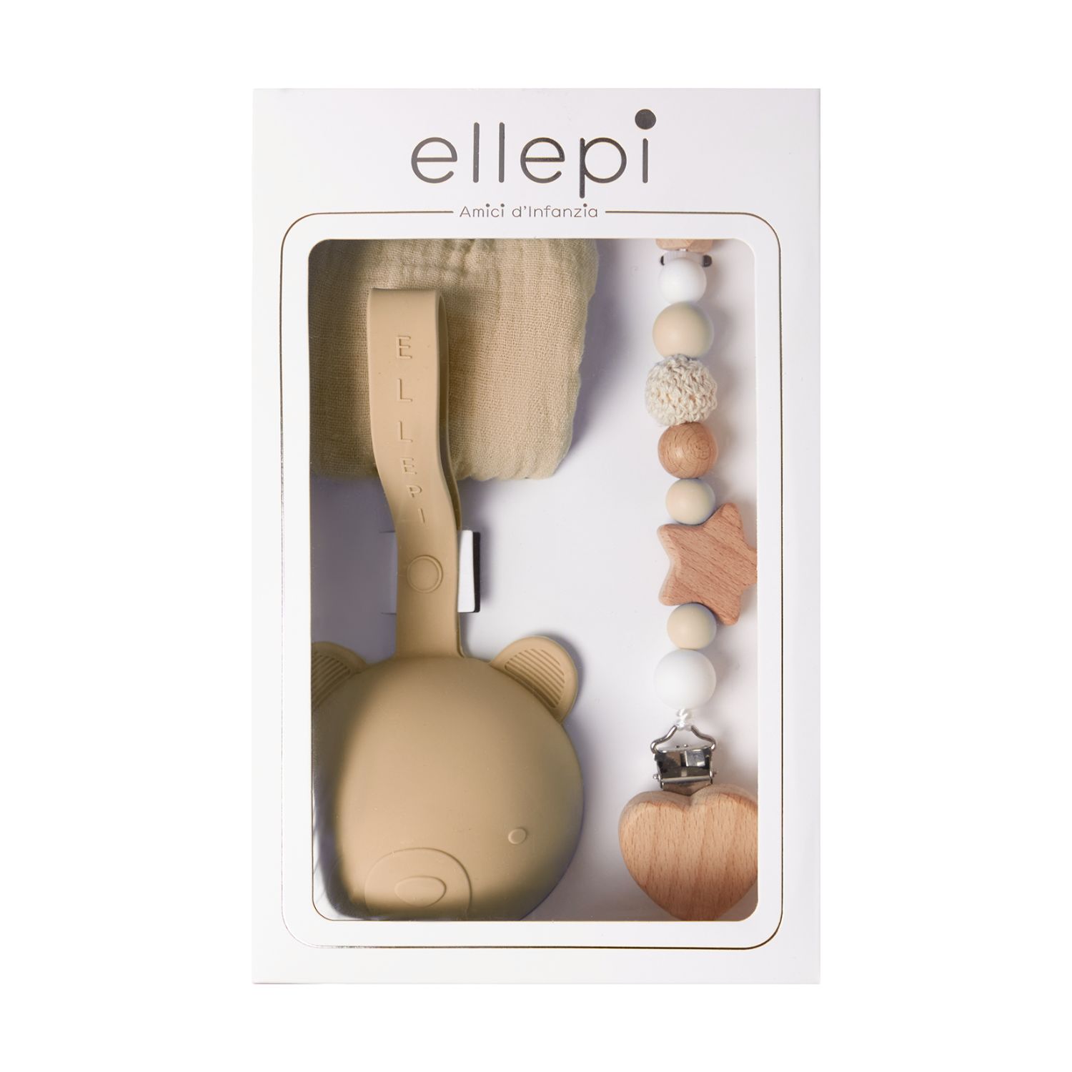 Ellepi Σετ Δώρου 3τμχ Πανάκι Παρηγοριάς Βαμβακερό Θήκη & Κλιπ Πιπίλας Μπεζ CR1016-2