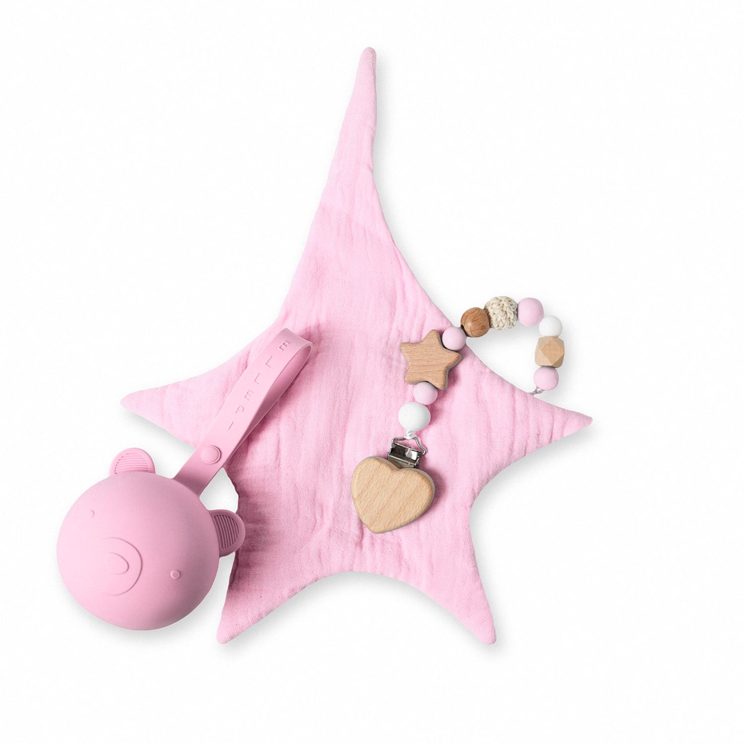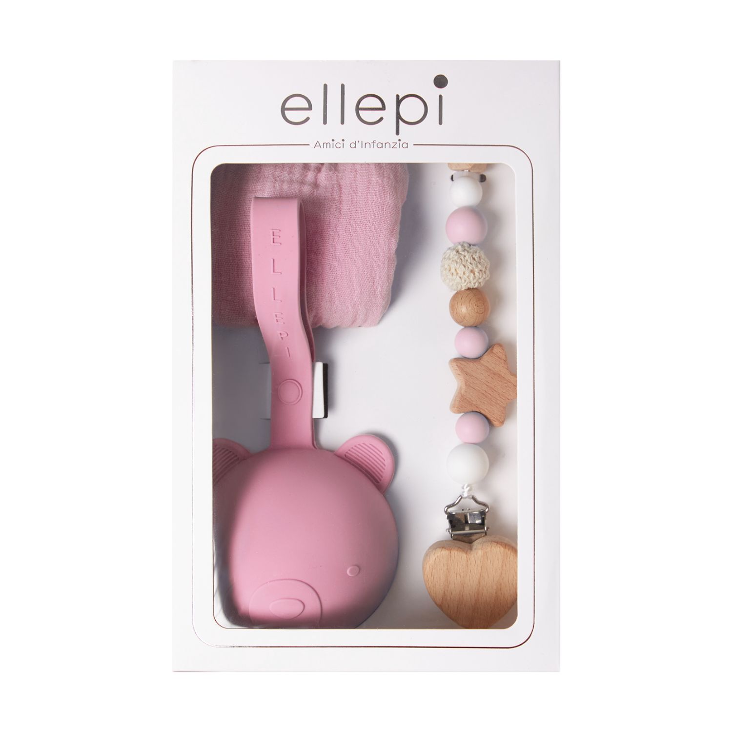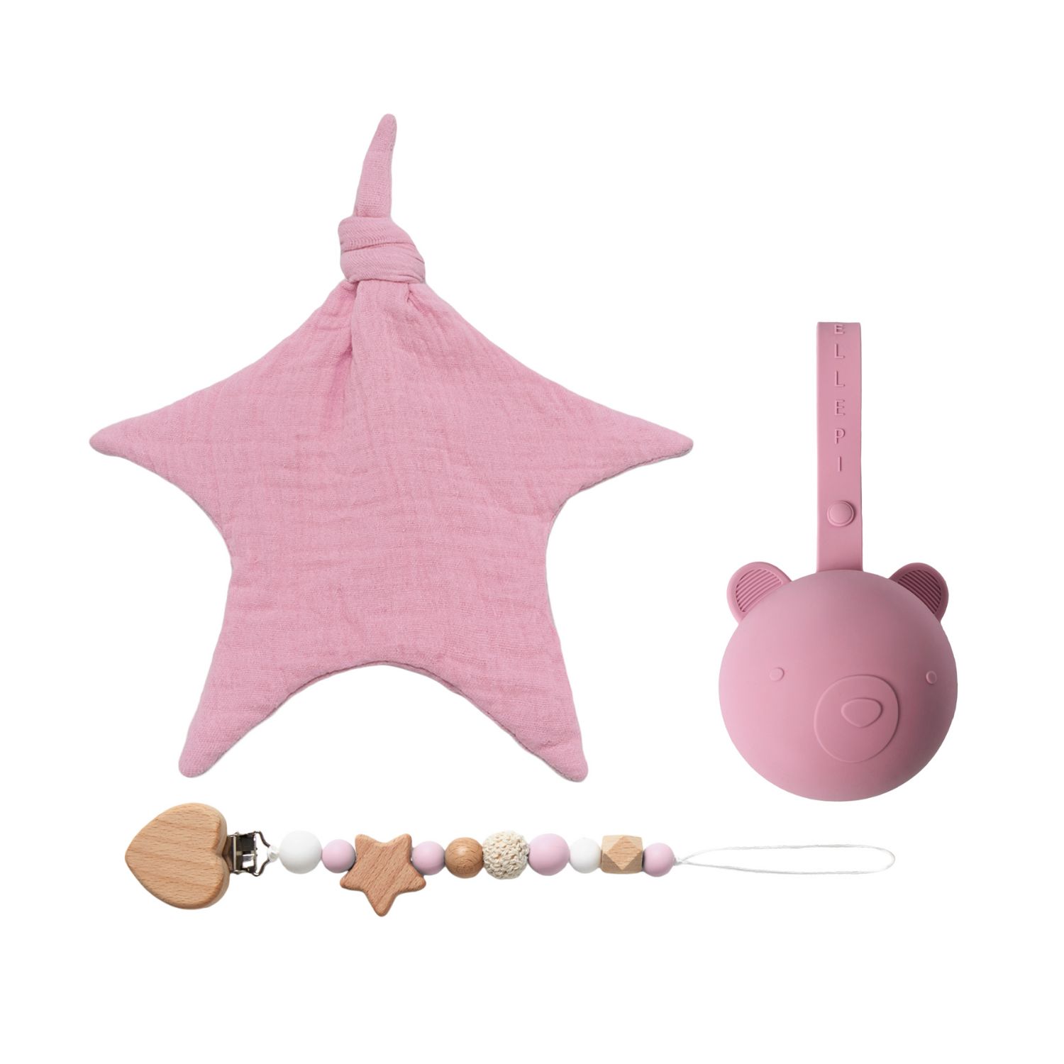 Ellepi Σετ Δώρου 3τμχ Πανάκι Παρηγοριάς Βαμβακερό Θήκη & Κλιπ Πιπίλας Ροζ CR1016-1