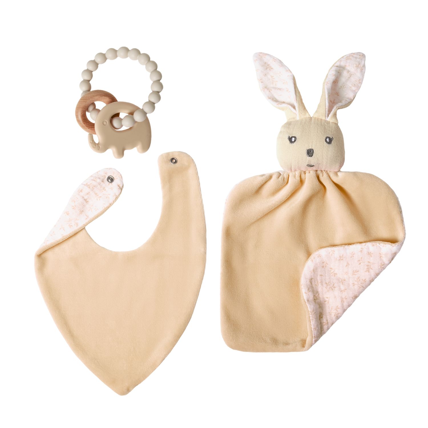 Ellepi Σετ Δώρου Μπεζ 3τμχ Πανάκι Παρηγοριάς Σαλιάρα & Μασητικό Οδοντοφυΐας Σιλικόνης & Ξύλου CR1015-2