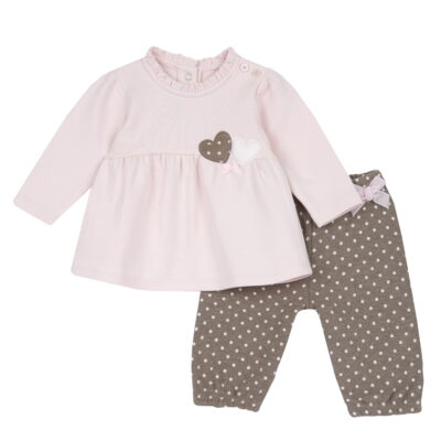 Chicco Βρεφικό Σετ 2τμχ Με Ροζ Μπλούζα Και Πουά Παντελόνι