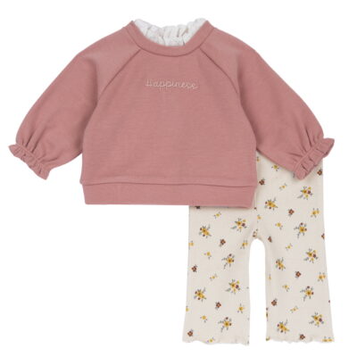 Chicco Βρεφικό Σετ 2τμχ Με Μπλούζα Και Παντελόνι Με Ποδαράκια Romantic